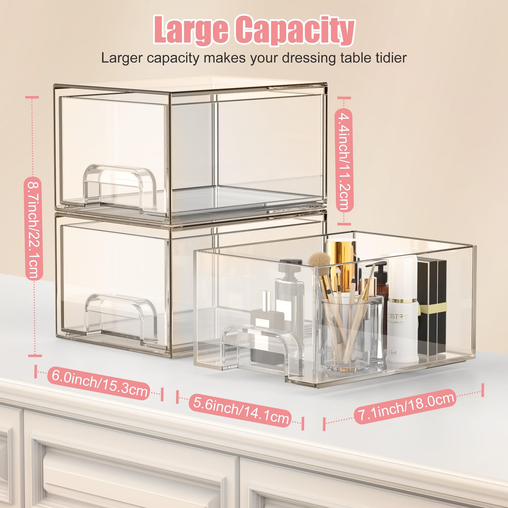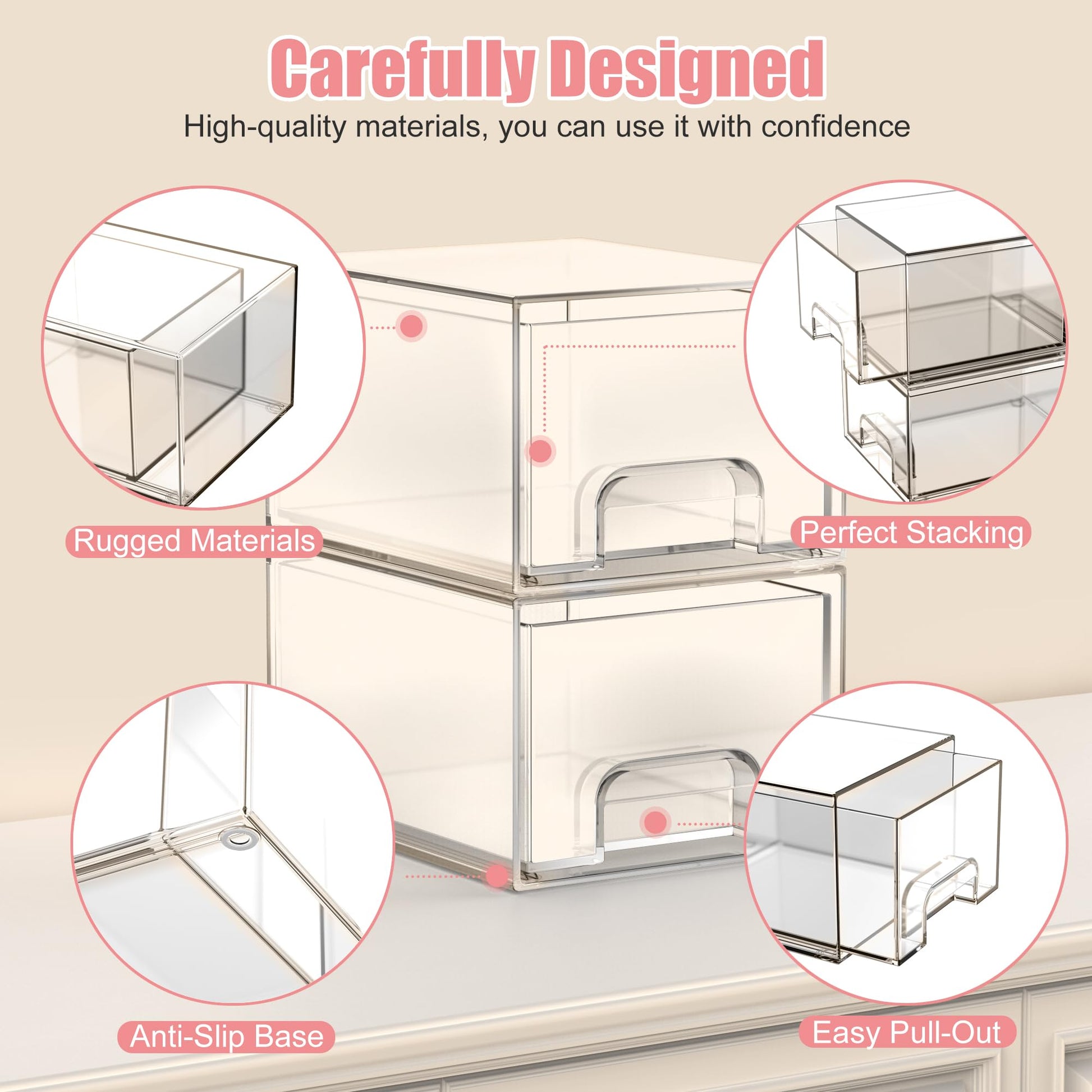 2 Stück Badschrank Organizer Box, Stackable Acryl Aufbewahrungsbox Schublade mit 16 rutschfeste Matte und Haltbarkeit, Organisationsboxen für Schlafzimmer Spülbecken Schreibtisch Badschrank Organizer