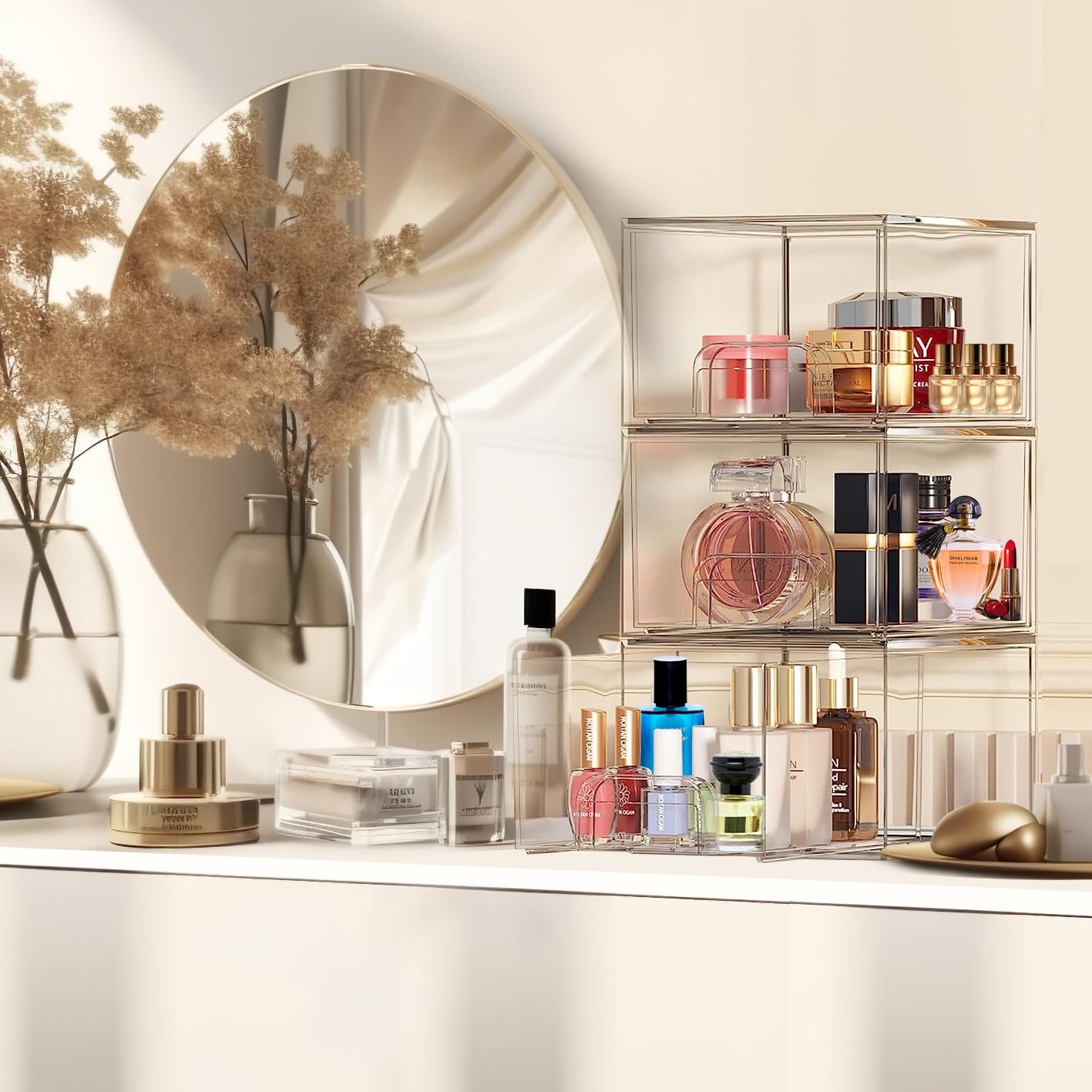 - 【Robust & Stackable】2 Stück Organizer box, einzelne größe 18,9 x 15,3 x 11,2 cm, das Material ist aus verdicktem stabilen Acryl Material, nicht nur kristallklar wie Glas, sondern auch geruchlos und robust, sicherer und langlebiger; darüber hinaus haben wir auch mit 16 speziellen Anti Rutsch Pads auf der Unterseite ausgestattet, die es Ihnen ermöglichen, den Platz optimal zu nutzen, indem sie ihn stabil halten und nicht verrutschen, wenn Sie vertikalen Stauraum schaffen.