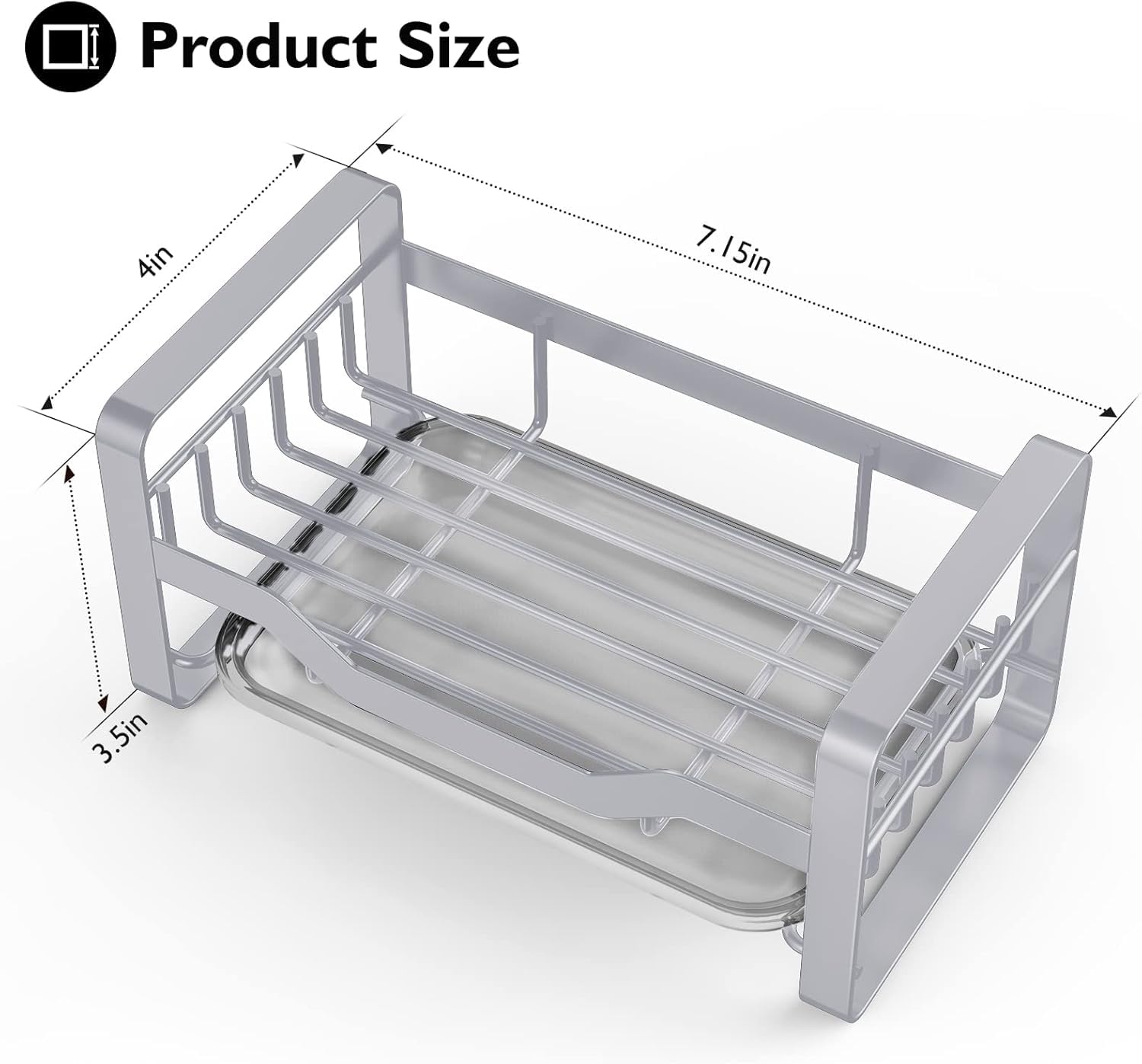 - Größere Kapazität: Erweitert auf 5,1 Zoll in der Breite und 9,8 Zoll in der Länge. Im Vergleich zu anderen Spülbecken Schwammhalter, sind die Länge und Breite verbessert. Daher kann dieser Schwammhalter mehr Speicherplatz bringen und die Speicherkapazität verbessern. Der Schwammhalter ist perfekt für die Aufbewahrung von Schwämmen, Spülmittel, Seifenspendern und Bürsten. Halten Sie Ihre Küchenspüle sauber und aufgeräumt.