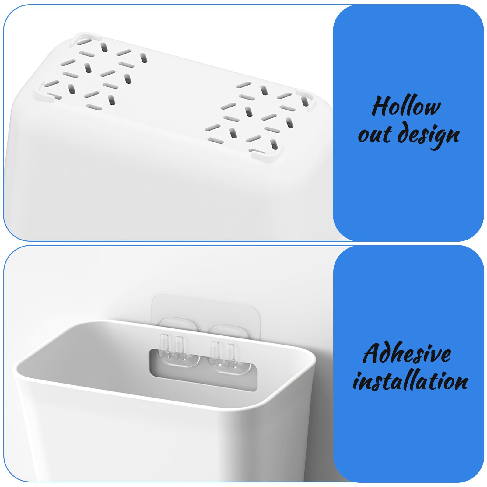 - 【Nicht Perforierte Installation】Selbstklebendes, spurloses Klebeband für die Installation, kein Bohren erforderlich. Kleben Sie das Klebeband zuerst auf die Aufbewahrungsbox, kleben Sie es an die Wand und warten Sie 24 Stunden auf die Verwendung