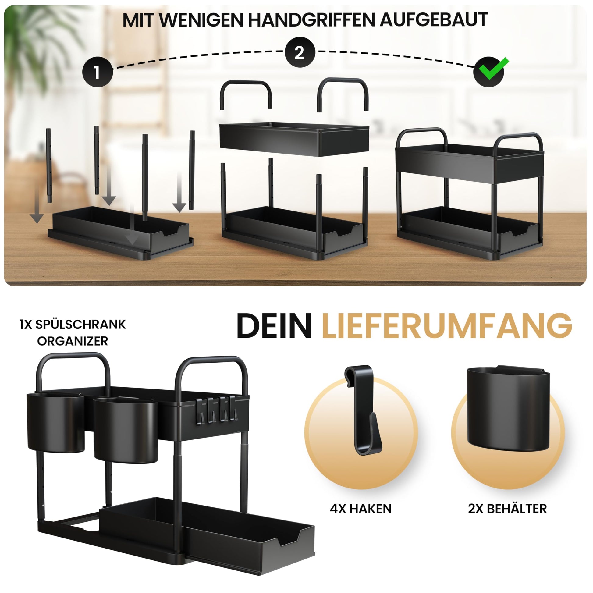 - [PLATZSPARENDE ORDNUNG] - Entdecke den Küchen Organizer für mehr Platz und Ordnung in Deinem Zuhause. Nutze das Waschbecken Regal für eine clevere Organisation in Deinem Waschbeckenunterschrank.