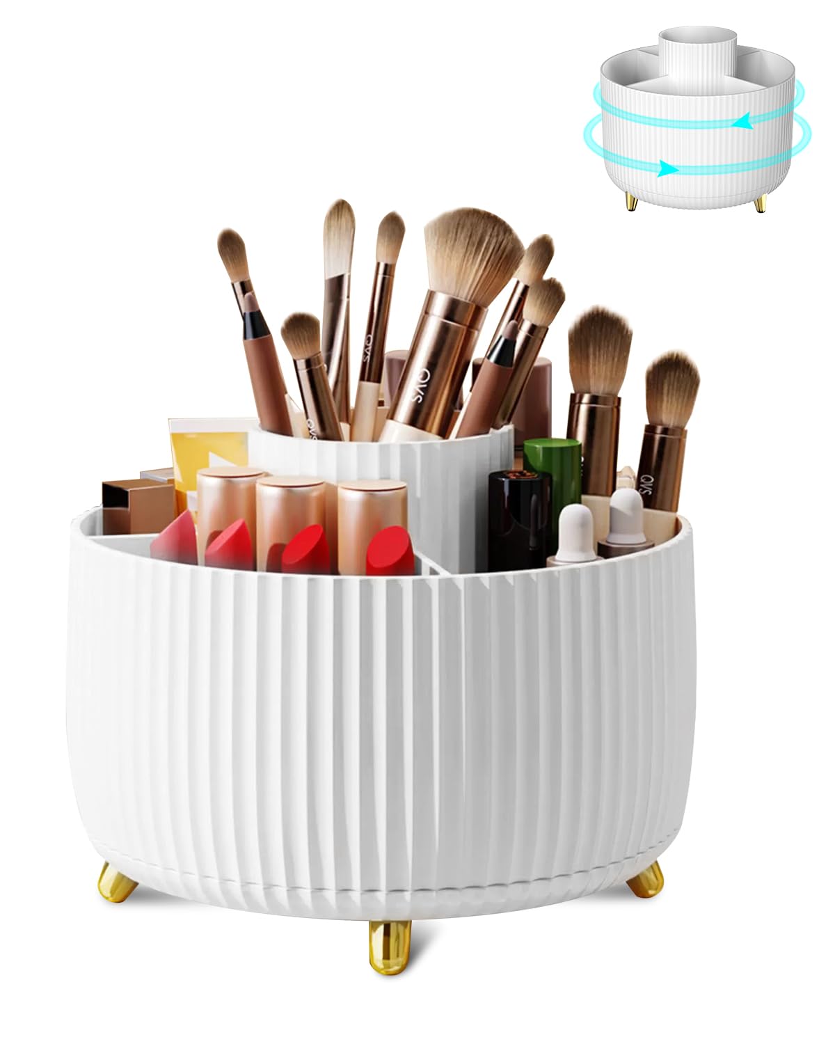 Nuangoo Kosmetik Make Up Organizer, 360°Drehbarer Pinsel Organizer,Kosmetikregal Kosmetik Organizers für Zimmer Decor Frisiertisch,Schlafzimmer,Badezimmer. (weiß)
