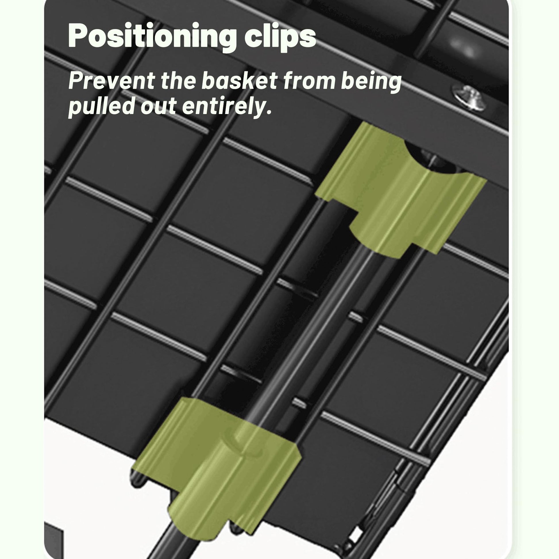 - 【Design mit hoher Leitplanke und Gleitschienen-Design】 Der ausziehbare Korb ist mit einer hohen Leitschiene ausgestattet, die mehr Gegenstände aufbewahren kann und sie vor dem Umkippen und Herausfallen schützt. Sowohl die obere als auch die untere Schiene sind mit Gleitschienen entworfen, leicht zu ziehen, glatt und leise, bringen Ihnen ein tolles Erlebnis. Die Unterseite dieses Küchenorganisators wird mit Saugnäpfen für einen stabileren Auszug geliefert.