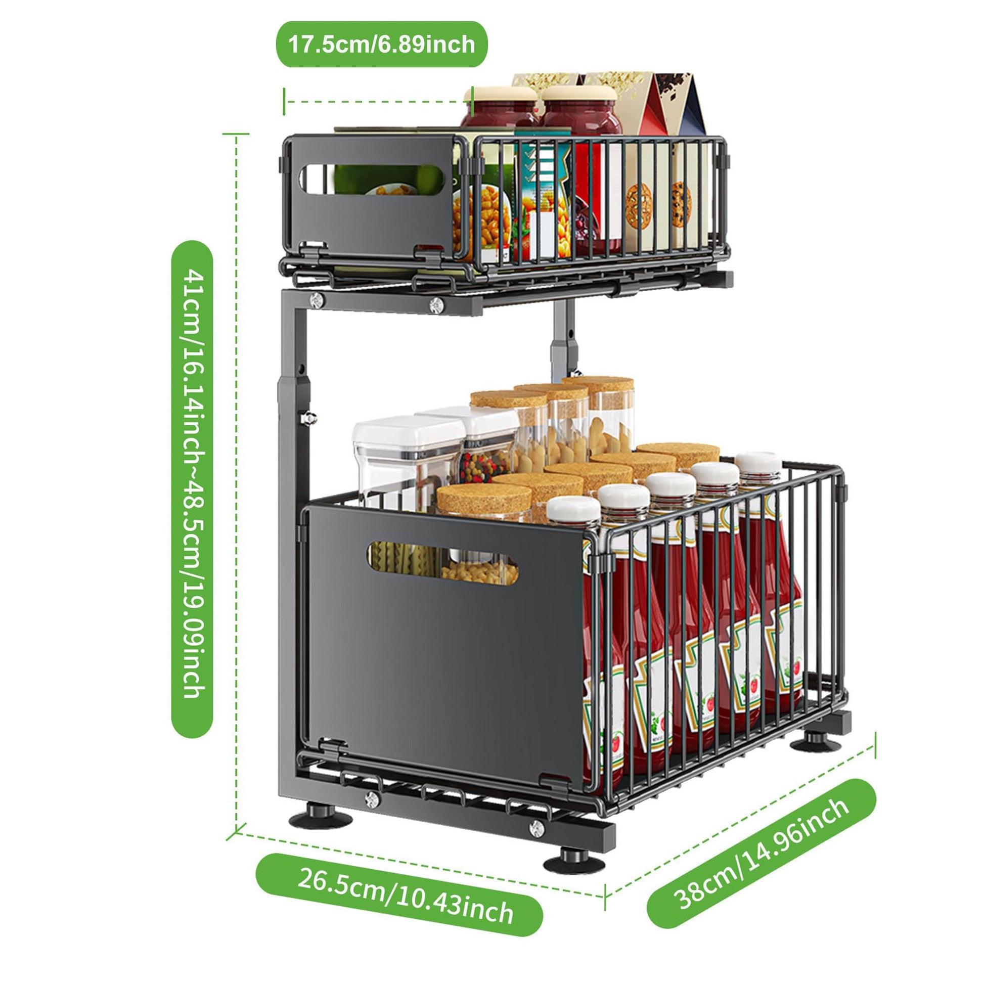YunNasi 2 Etagen Unter Waschbecken Regal Metall Unterschrank Organizer Spülschrank Regal für Küche Badezimmer Schrank Küchen Organizer Gewürzregal Höhenverstellbar (Schwarz-1 Pack)